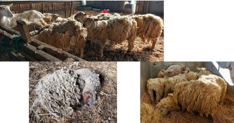 Nos équipes ont découvert un tableau désolant : vaches, 10 brebis (dont 3 édentées et une avec mammite) et une chèvre vivaient dans des conditions inacceptables. Les animaux présentaient un état de maigreur avancée et, malgré une température dépassant les 30°C, n’avaient pas d’abreuvement depuis plusieurs jours. Les ovins n’avaient pas été tondus depuis plusieurs années. Pire encore, un cadavre d’ovin a été retrouvé sur place. Notre intervention était urgente !